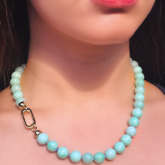 BIRDIE mint green chalcedony gemstone bead necklace