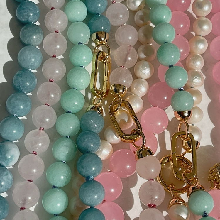 Browse our unique hand-made collection of genuine semi-precious gemstones and freshwater pearl necklaces, bracelets and charms.